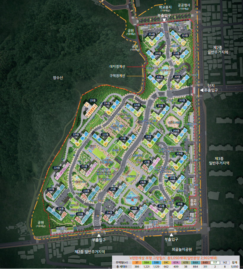 인천광역시 부평구 청천동에 위치한 이편한 세상 그랑 힐스는 총 5050세대 중 253세대가 민간 임대로 운영되는 아파트입니다. 주차 공간은 총 45,706대를 수용할 수 있어 각 세대당 약 1.1대의 주차 공간이 마련되어 있습니다.