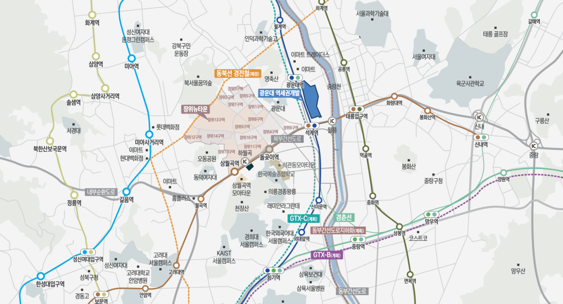 6호선 상월곡역 380m 6호선 돌곶이역 410m 6호선 월곡역 1,210m